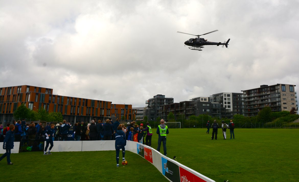 Søndagens FanZone ble av det luftige slaget. Med en noe overskyet himmel ble det ikke god nok klaring for fallskjermhopp, men det satte imidlertid ingen brems for den flotte rammen rundt helgens FanZone! Vår daglige leder Eirik Henningsen ble fløyet inn på treningsbanen i helikopter sammen med leder for Airshowet hvor de møtte publikum. Det ble det etterpå sluppet baller ut over treningsbanen i det helikopteret lettet fra treningsområdet, hvor de heldige mottakerne vant billetter til Sola Airshow.