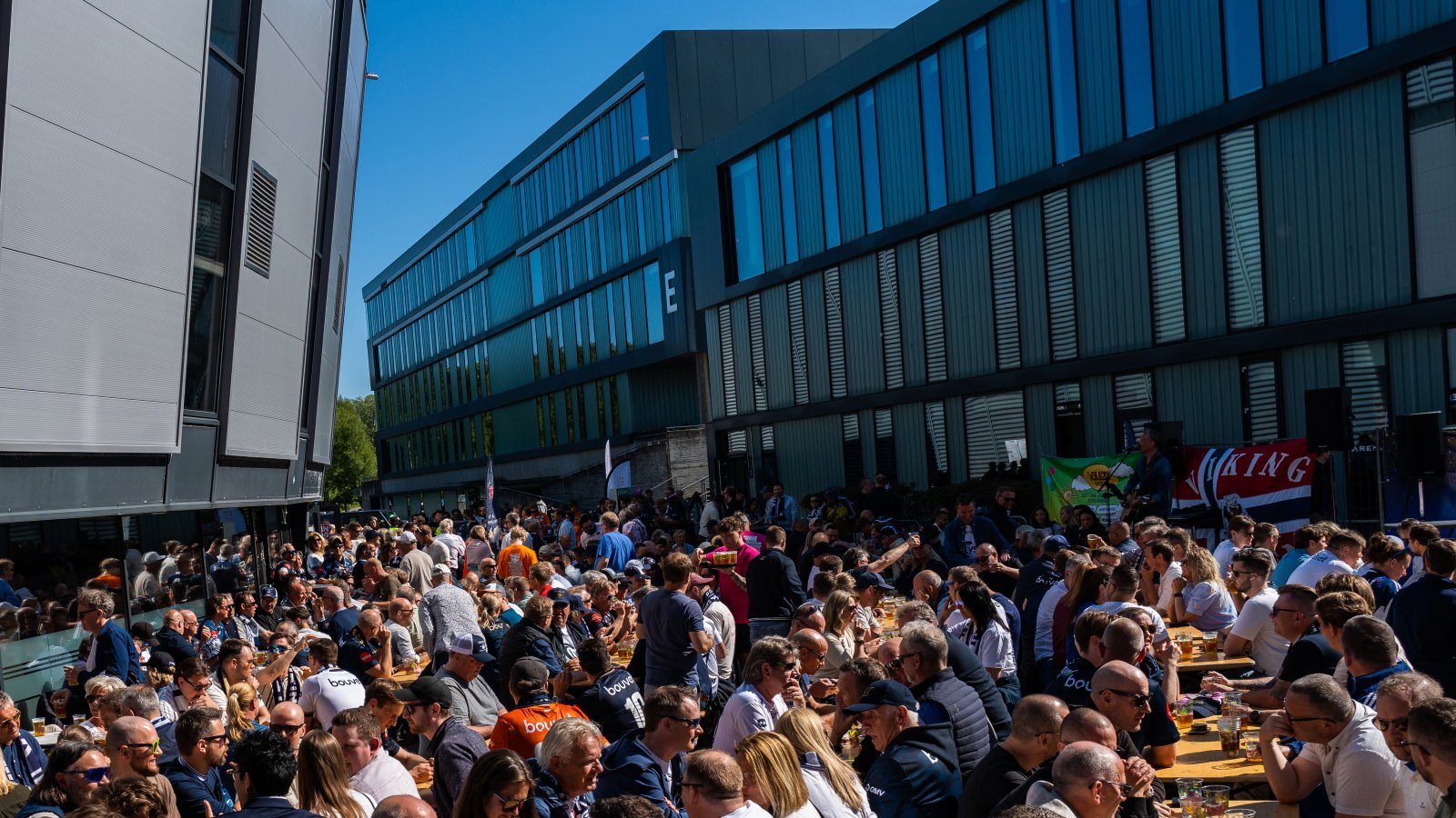 "Di mørkeblå" utvider lokalene med telt på utsiden, og holder åpent både før og etter kamp, og byr som alltid på god stemning, musikk, mat og drikke.
