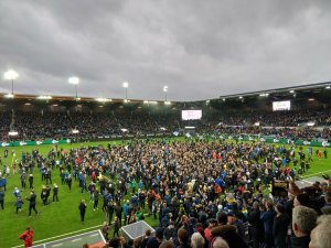Det endte med banestorming. Det endte med jubel. Det endte med en plass i neste års Eliteserie. Det endte godt! 30 år etter forrige opprykk greide vi det igjen. Og for en fest det ble.